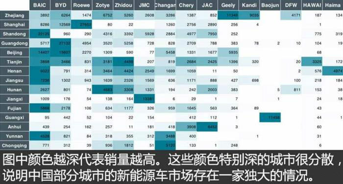 不过,中美新能源市场也有所不同,如美国各个城市新能源汽车市场的竞争格局较为类似,而中国的部分城市则存在本地企业一家独大的情况。
