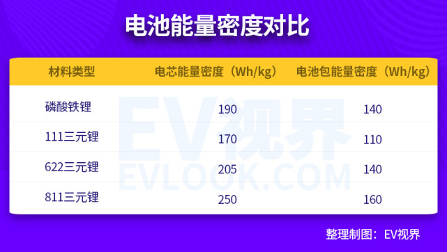 能量密度:磷酸铁锂<三元锂