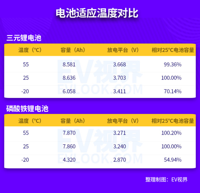 低温性能:磷酸铁锂<三元锂
