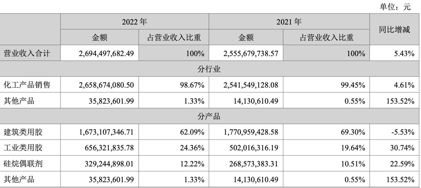 ·Ö²úÆ·À´¿´£¬2022Ä깫˾½¨ÖþÀàÓýº¹±Ï×ÊÕÈë16.73ÒÚÔª£¬Í¬±È¼õÉÙ5.53%£¬Õ¼ÓªÊÕ±ÈÖØÎª62.09%£»Ã«ÀûÂÊ17.44%£¬Í¬±ÈϽµÁË0.91%¡£¹¤ÒµÀàÓýºÊÕÈë6.56ÒÚÔª£¬Í¬±ÈÔö³¤ÁË30.74%£¬Õ¼±È24.36%£»Ã«ÀûÂÊ25.95%£¬Í¬±ÈϽµÁË6.24%¡£¹èÍéżÁª¼ÁÊÕÈë3.29ÒÚÔª£¬Í¬±ÈÔö³¤22.59%£¬Õ¼±È12.22%£»Ã«ÀûÂÊ16.36%£¬Í¬±ÈϽµÁË8.08%¡£