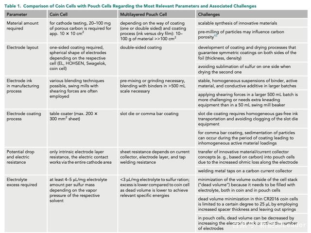 虽然在实验室级别,Li-S电池的研究取得了许多进展,但是实验室通;诳凼降绯,并且电解液和金属锂近乎无限供应,因此实验室中取得的成果并不能直接用于软包电池的设计。为了满足商业应用的需求,需要从多角度提升活性物质在电池中的占比,减少电解液和金属锂的使用量,从而有效的提升电池的能量密度。