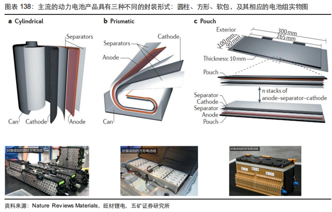 下图来自《20211012-五矿证券-电气设备行业动力电池深度:从芯出发,回归技术本源、聚焦发展主线》P78,显示了三种电池结构的卷绕或者叠片方式(其中Cathode是负极,Anode为正极,Separators为隔膜),我们可以看到正负极片的数量和隔膜的数量存在相关关系,圆柱型隔膜数量是正/负极片的2倍,方形则是3倍,软包跟圆柱也差不多(如果正极片数量是n,那么隔膜数量为2n-1)。