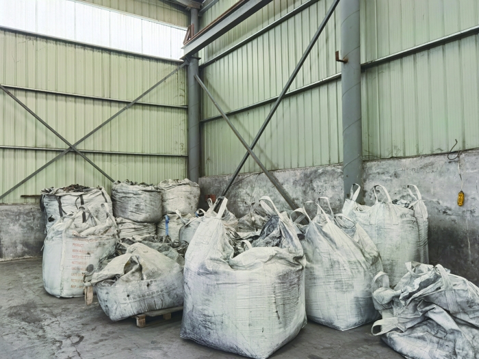 在另一位小作坊老板罗成(化名)的介绍下,记者见到了王华,一位在新乡当地“电池生意做得很大”的老板。从临街的一个小门进去,穿过一条巷子,打开一道铁门,再穿过一个院子,再打开一道门,就是王华的仓库。记者看到,仓库里堆放着数十个大编织袋,里面装的正是“黑粉”。