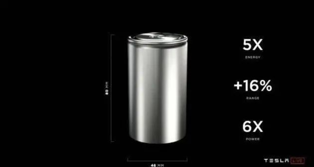 电池方面,发布了全新的无极耳4680电池,该电池高80毫米、直径46毫米。和传统锂电池相比,无极耳电池的两端不再有凸起的极耳,有利于电池工作散热与减少能量损耗。最终,新电池电池能量为过去的5倍,功率为过去的6倍,同时成本降降低14%。